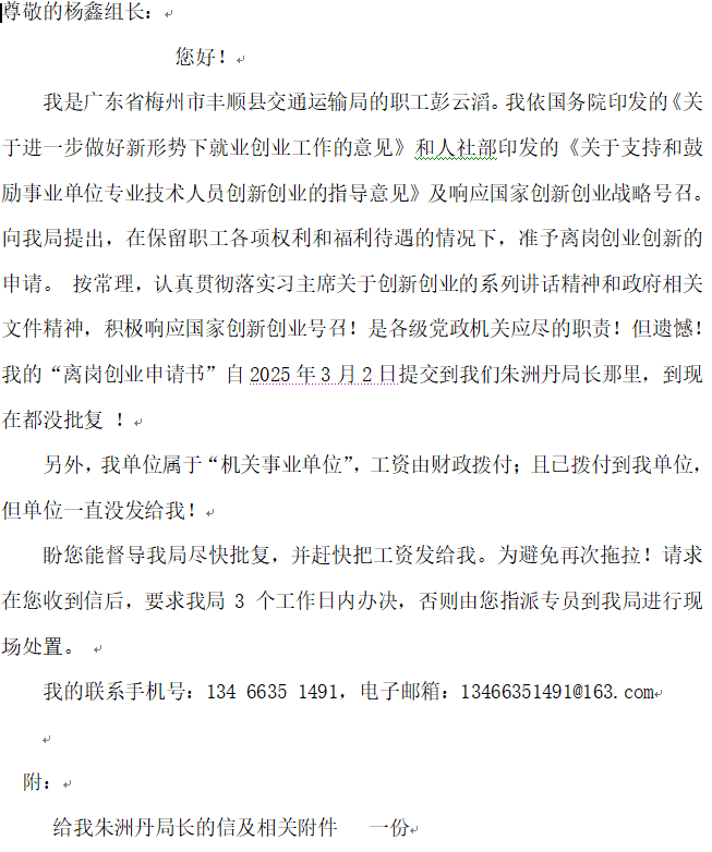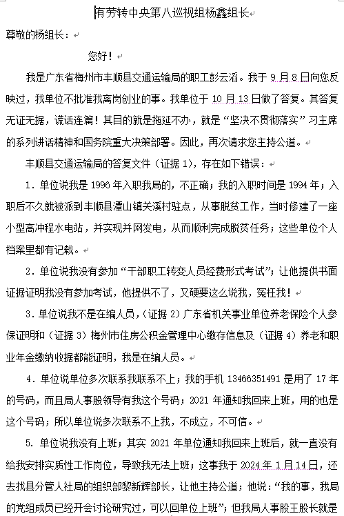 部分证据文件, 见: 梅州市组织部 罗盛芬 部长 求助信